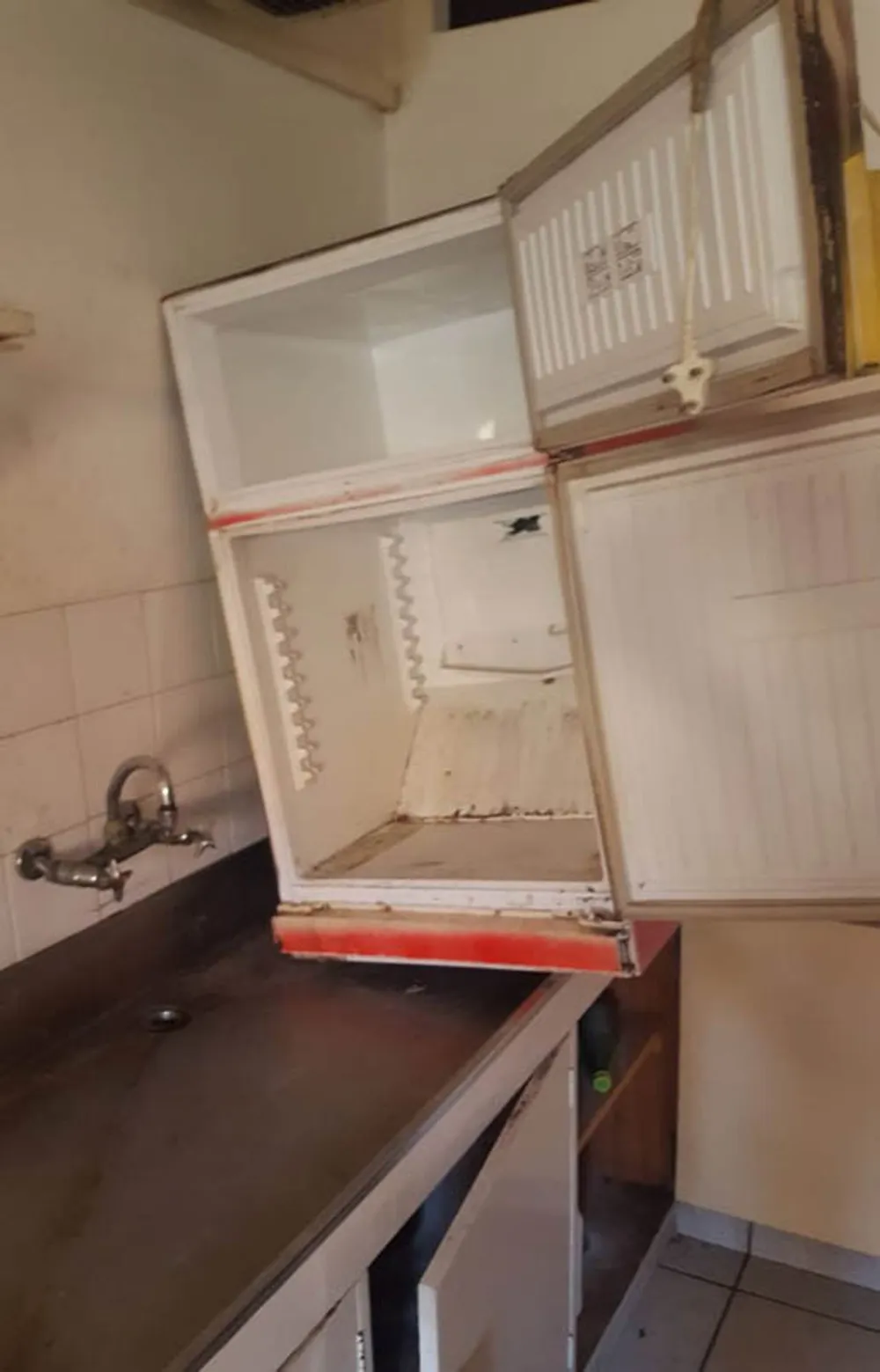 There is also a broken fridge in the kitchen standing on the counter, while floor tiles removed some time ago were left in a heap in a corner.