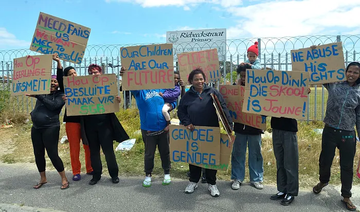 PROTEST: Parents at Riebeeck Street Primary PROTEST: Parents at Riebeeck Street Primary