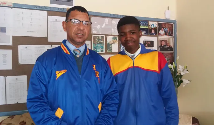 STUNNED: Vaughan Murray, principal of Robinvale High School in Atlantis, with the app mastermind Batandwa Mgutsi, 16, who is in Grade 10 STUNNED: Vaughan Murray, principal of Robinvale High School in Atlantis, with the app mastermind Batandwa Mgutsi, 16, who is in Grade 10