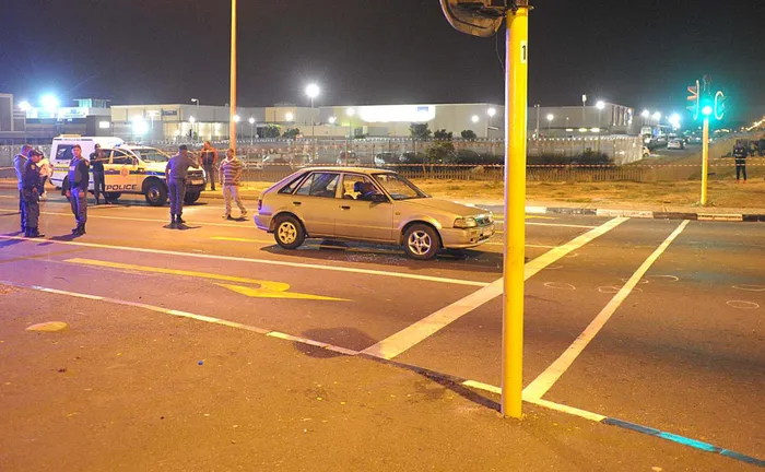 Police were called to the robots on the corners of AZ Berman Drive and Morgenster Road, in Beacon Valley, just before 8pm on Tuesday where they found the bodies of the men slumped in their car seats.