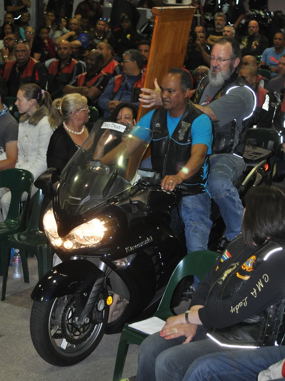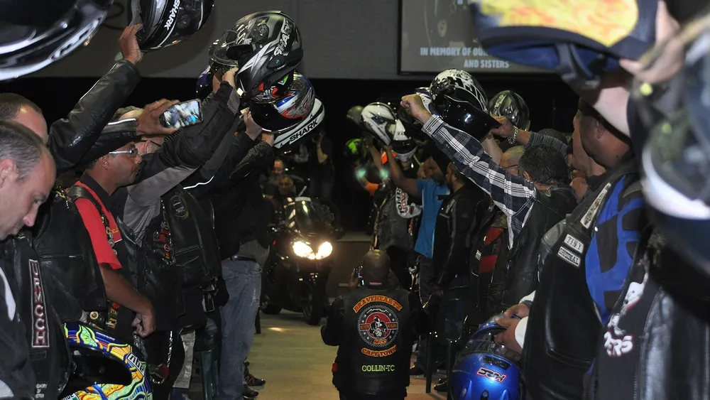 A trumpeter played Taps as a final tribute to the fallen, and the riders formed a guard of honour with their helmets as the bikes carrying the wooden plaques with the names of all the riders who have died on Western Cape roads in the past 15 years growled slowly down the aisle and out of the building.