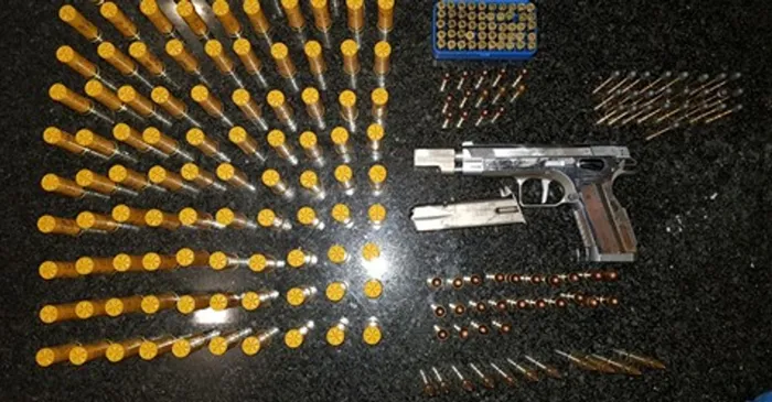 They recovered 1.6kg of tik, 300 mandrax tablets, 25 .38 special live rounds, 11 7.62 live rounds, 24 .45 calibre live rounds, 64 9mm live rounds, 100 live shotgun rounds a 9mm Tanfoglio pistol with silencer, one 7.62 rifle with scope as well as a SAPS radio in a tow truck.
