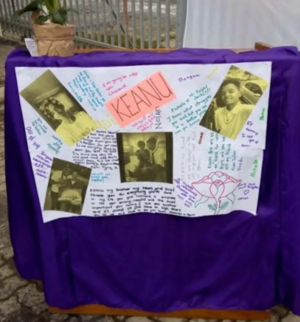 Photographs of Keanu were bordered by special messages from his classmates, calling him a “Brave Knight”.