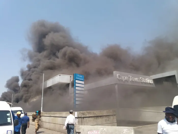 Another blaze has broken out at Cape Town railway station with at least two train sets on fire. Photo: Armand Hough / African News Agency (ANA) Another blaze has broken out at Cape Town railway station with at least two train sets on fire. Photo: Armand Hough / African News Agency (ANA)