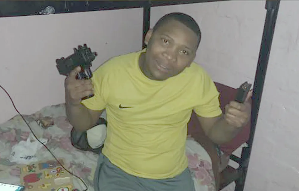 Pictures of Pieterse posing with a 9mm semi-automatic pistol and a fully automatic Uzi machine gun were also handed in.