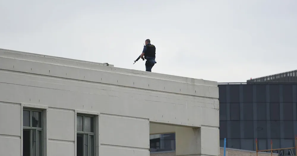 PRECAUTIONS: Sniper on the roof. Photo: Monique Duval
