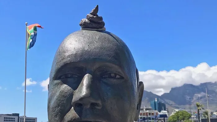 Rebel artist group Xcollektiv has taken responsibility for placing fake poo on the head of a statue of former president FW de Klerk at the V&A Waterfront.