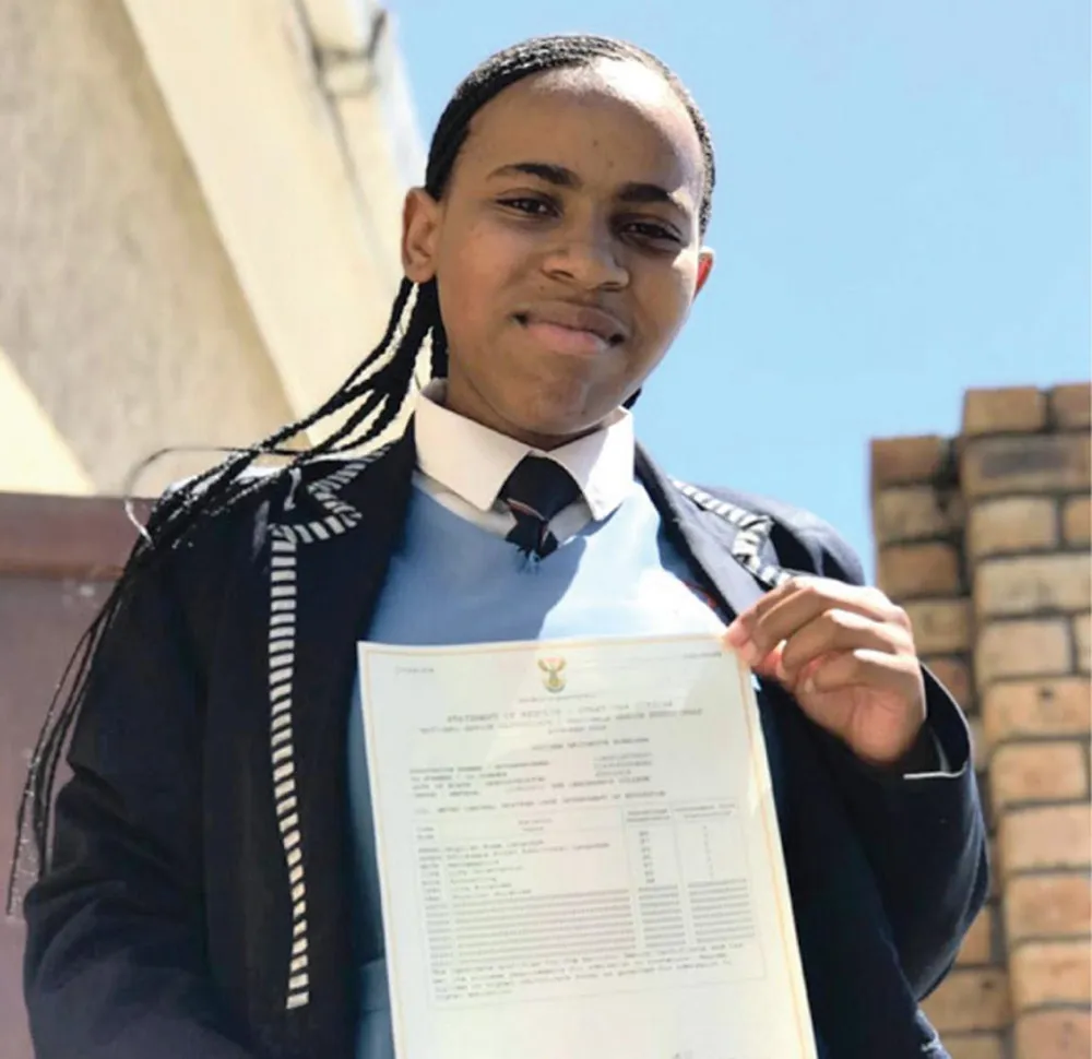 Vuyiswa, a pupil at The Leadership College, a no-fee school, came top of her class with distinctions in all seven subjects and a 92% average.