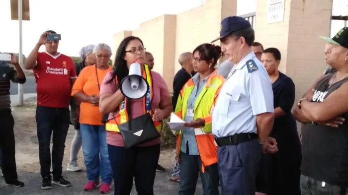 On Friday more than 50 people protested outside Strandfontein Police Station calling for top cop, Captain David Malong, to be removed.