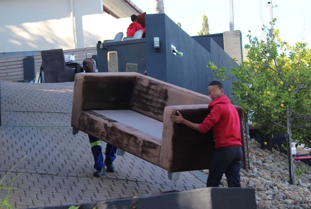 Furniture, TVs and other household items were carried out of the larney house by officials from the Anti-Gang Unit (AGU) and South African Revenue Services (SARS).