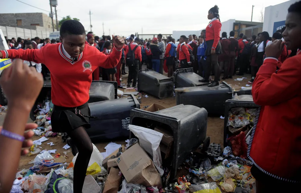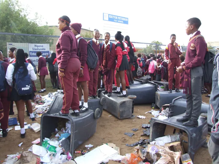 Bloekombos, Masabani, Wallacedene and Hector Petersen high schools were all closed by 11am as the children ran riot, painting the streets red in their distinctive school uniforms.