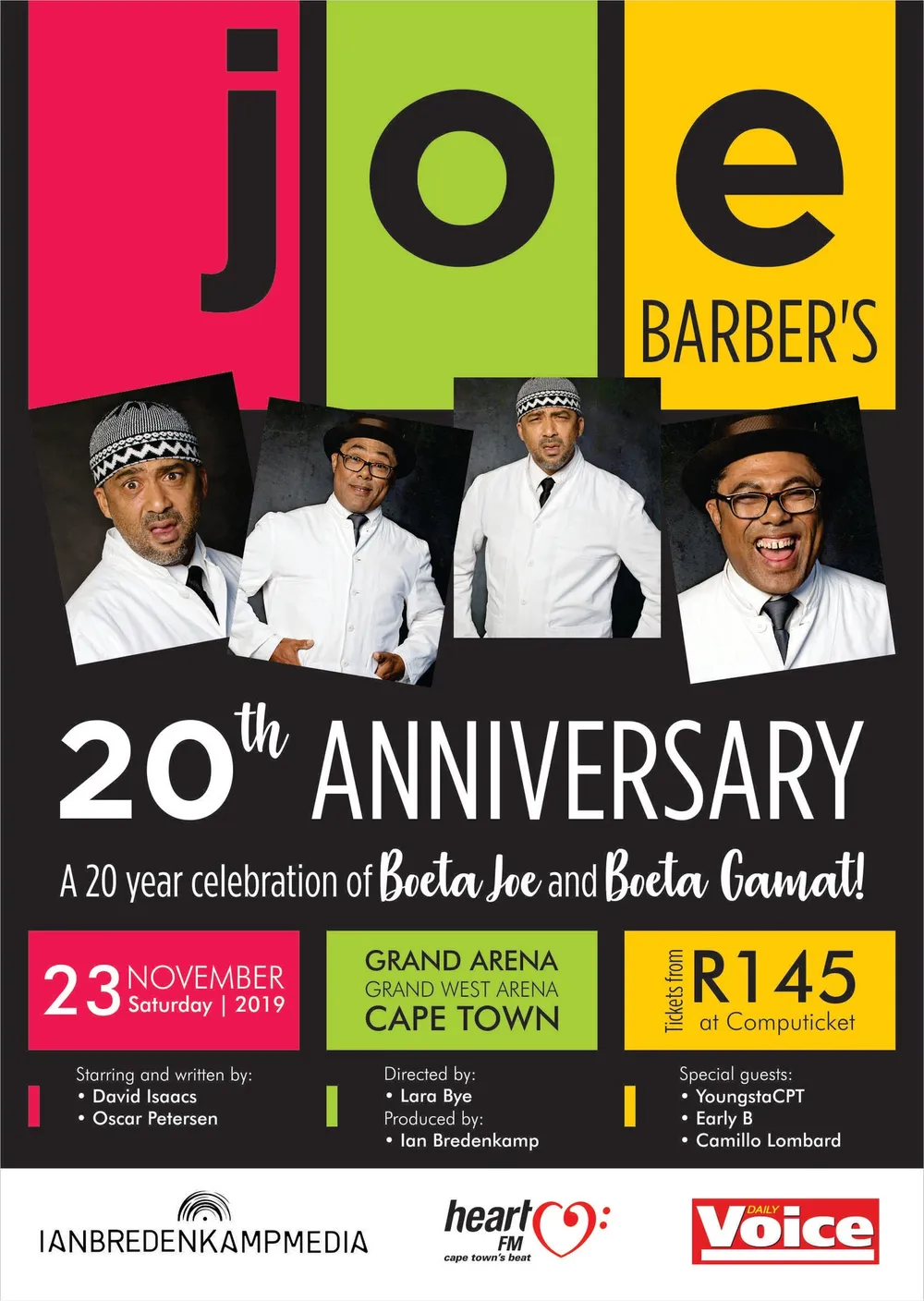 Grapjasse Oscar Petersen and David Isaacs shot to fame as Boeta Joe and Boeta Gamat, who along with Gamat’s wife Washiela (played by David) and the incorrigible Outjie(Oscar) had audiences rolling in the aisles for many years with their kaskenades.