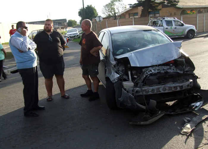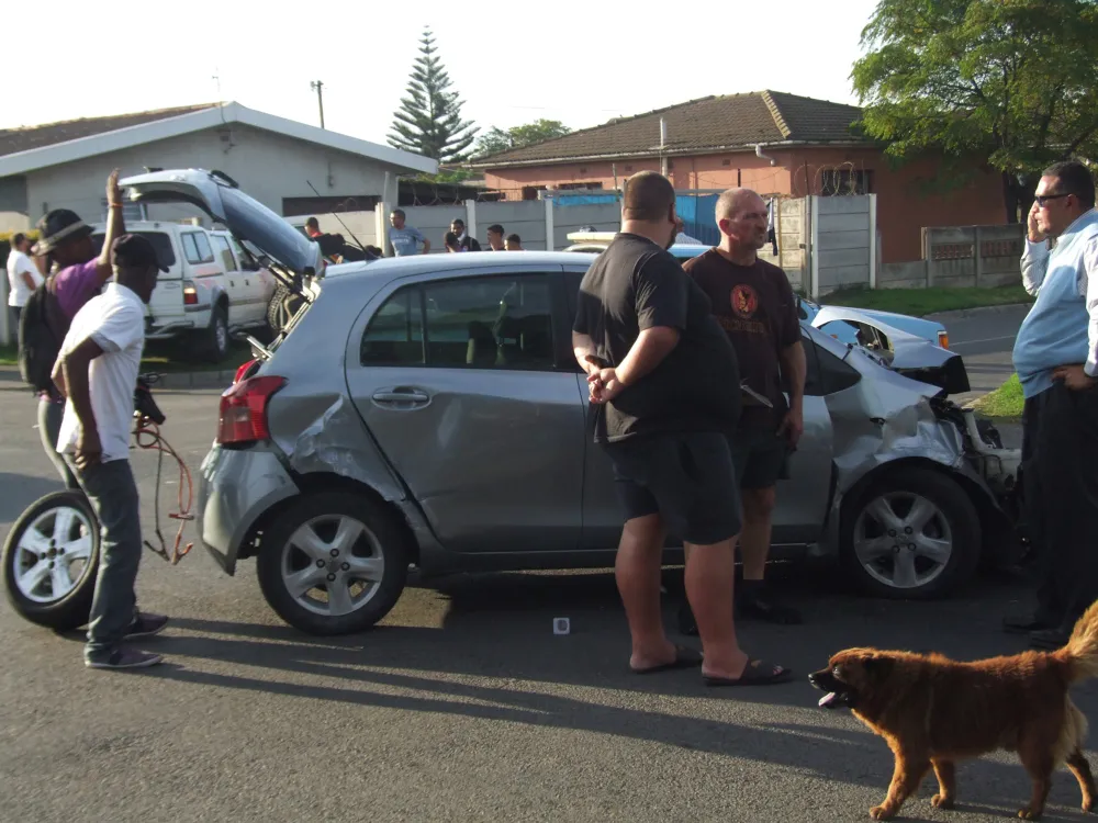 “They drove into the side of a lorry and they tried to run off, but people caught the older guy and gave him a lekker pak. We heard he’s an old hand at stealing cars in this area. We are just glad the teacher is OK.”