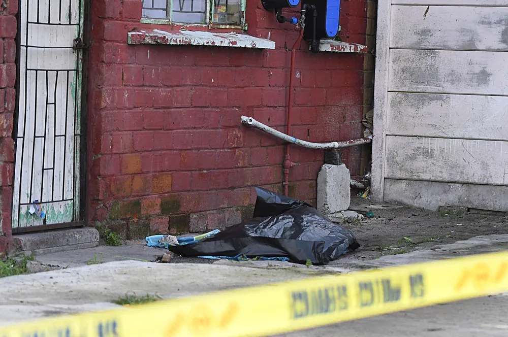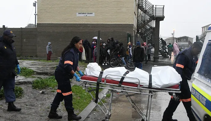 Body is removed in Ontario Court, Hanover Park. Picture: Leon Knipe