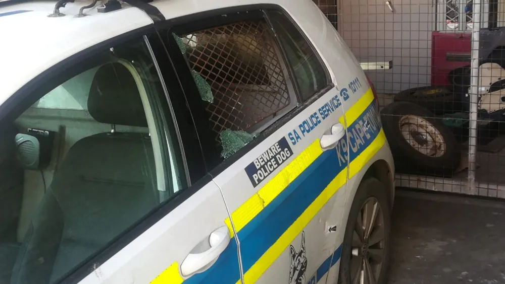 “When they came to a stop in Daniel Road, officers attempted to apprehend the gunmen but the community threw stones and helped the skollies escape with the vehicle and the guns.”