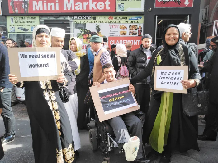 Most protesters held placards that stated: “We need social workers and treatment centres”, “Children and families live in fear on the Cape Flats” and “Protect the children and elderly”.