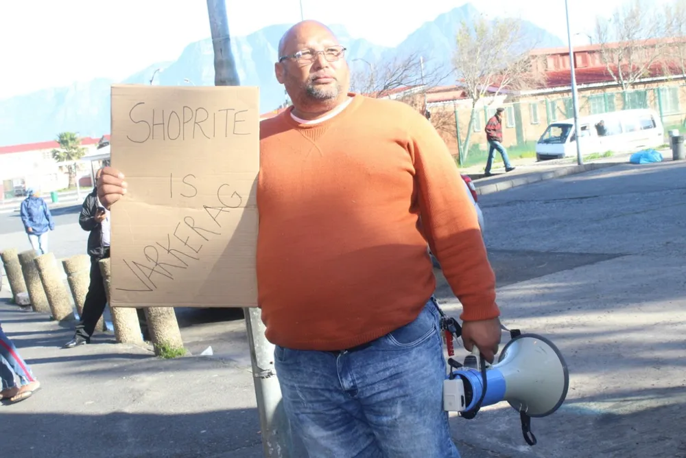 The picket, led by community workers Cameron Wheldon and Ebrahiem Abrahams, caused a stir on the taxi terminus as they demanded Shoprite’s regional managers address the community.