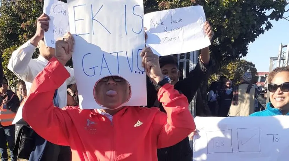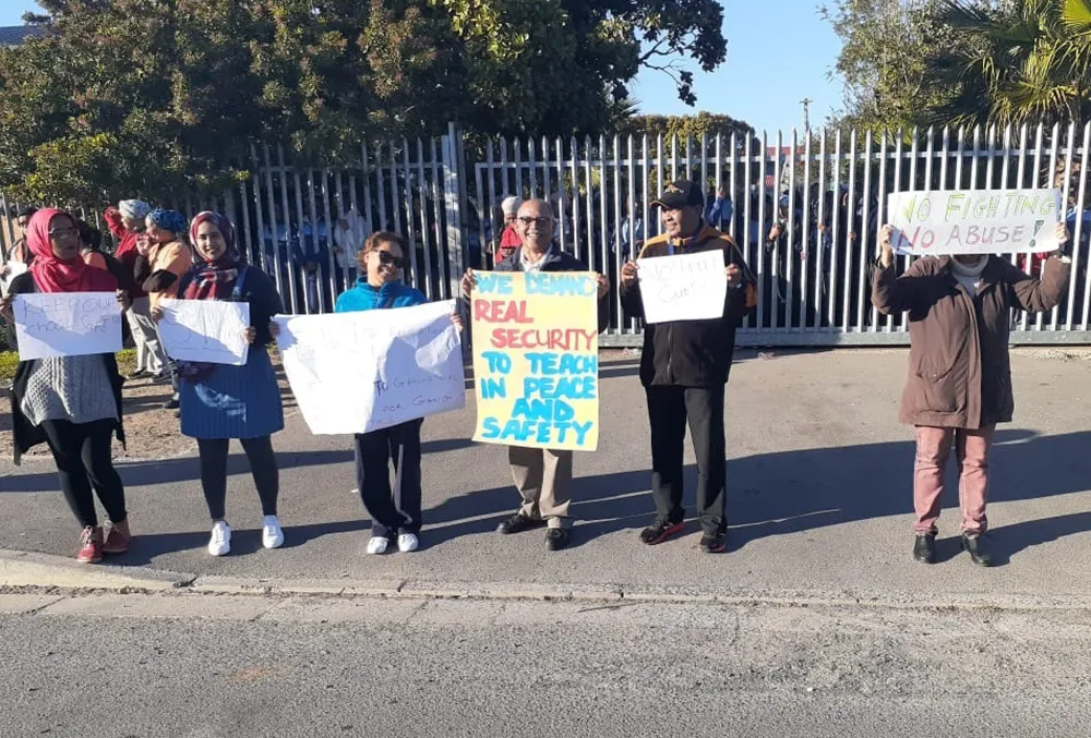 Teachers, pupils and their parents protesting outside Manenberg High School on Tuesday. Picture: Monique Duval
