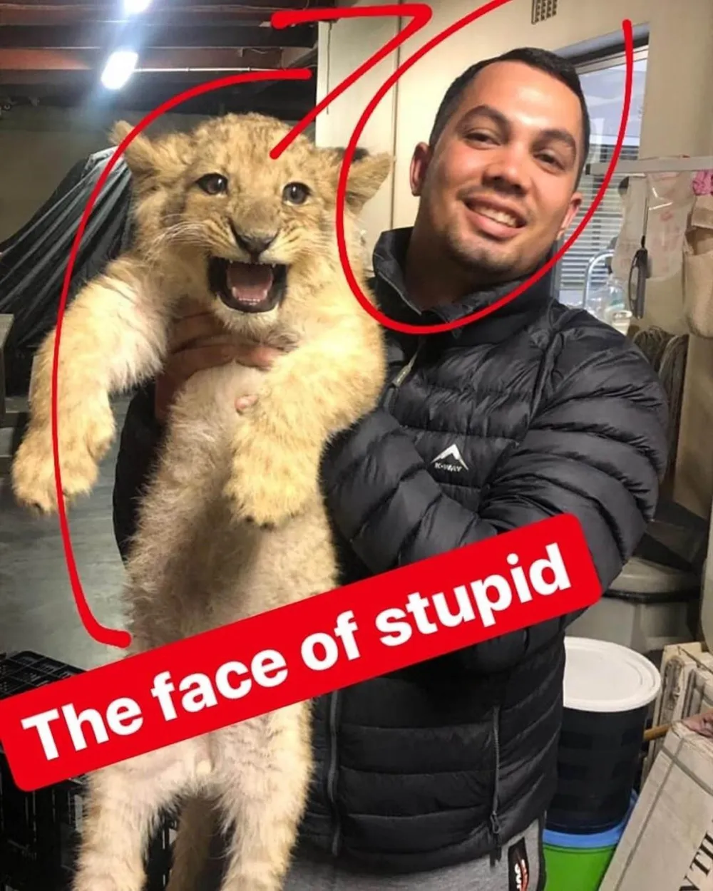 Shurud holding up the cub, mimicking a scene from The Lion King. Video supplied