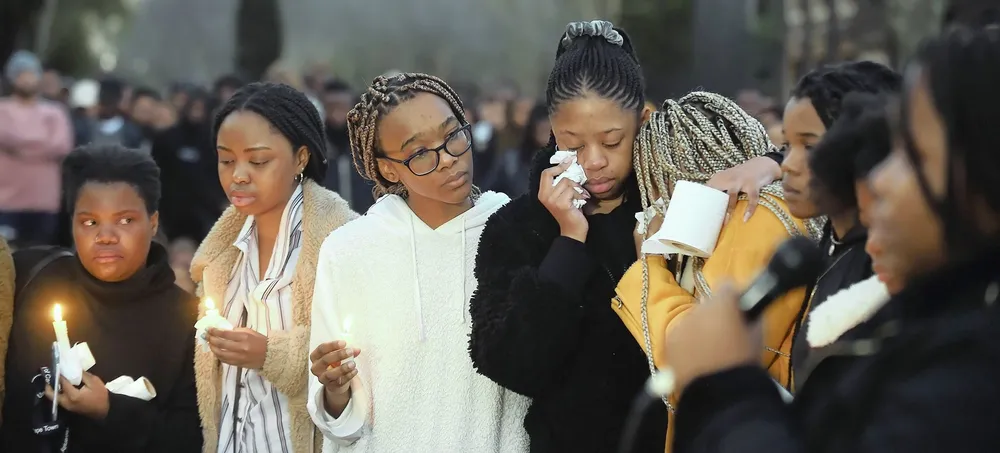 UCT students held a night vigil for Uyinene Mrwetyana outside the Sarah Baartman Hall. Photo: Phando Jikelo / African News Agency (ANA)