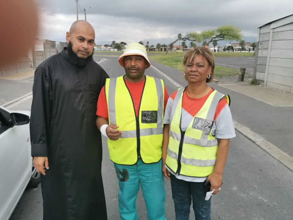 SHOCK: Aslam Cassiem with Joseph Boyes and another council worker who escaped a Manenberg gang shooting. Picture: Monique Duval