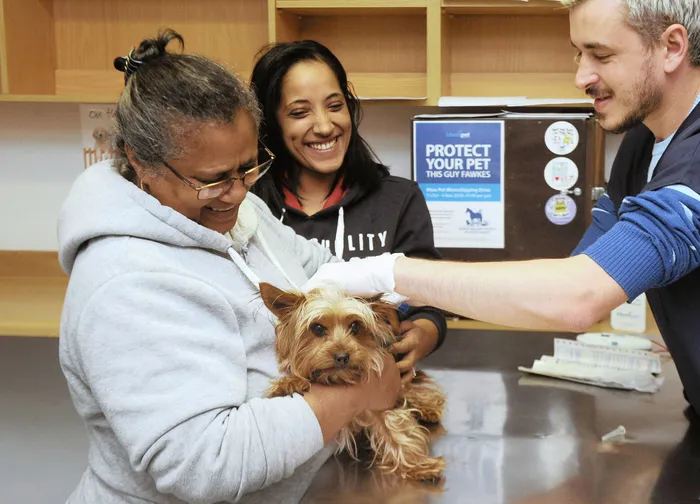 Eleanor Oliver and Claudia Bowers with Zoe, who was microchipped by Jaque le Roux. Picture: Tracey Adams/African News Agency (ANA) Eleanor Oliver and Claudia Bowers with Zoe, who was microchipped by Jaque le Roux. Picture: Tracey Adams/African News Agency (ANA)