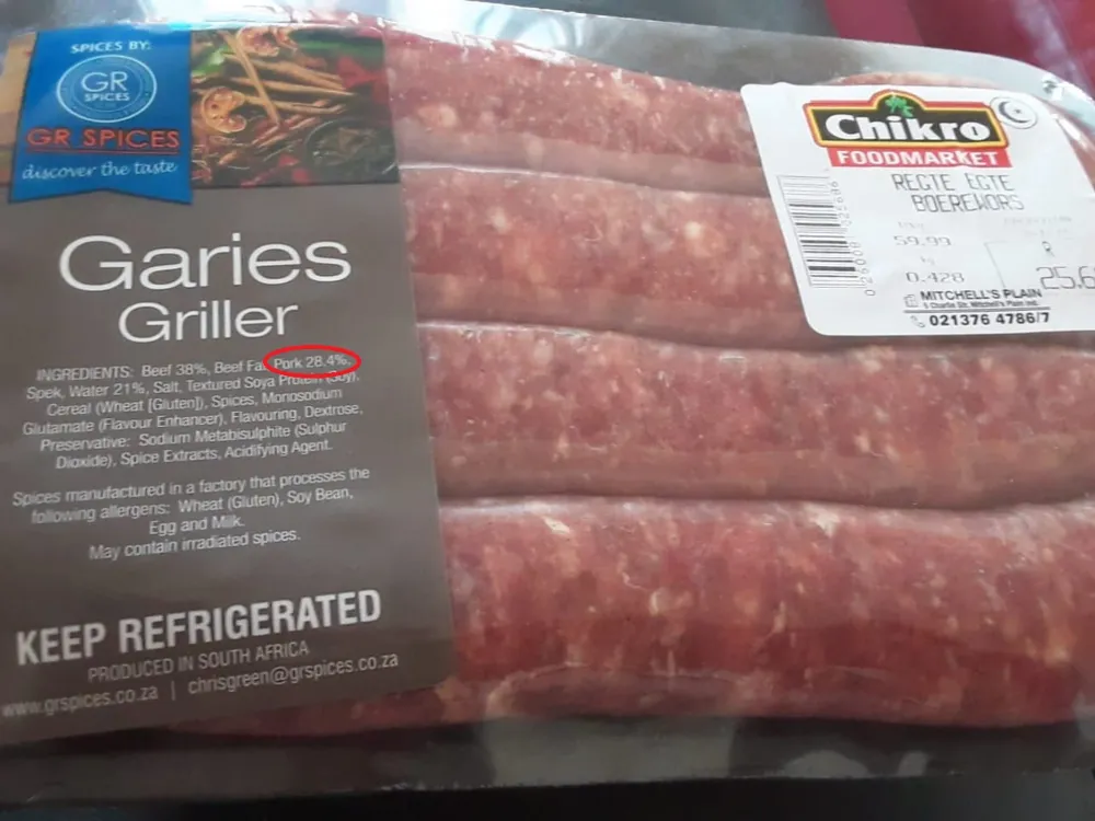 “We have been selling this sausage for three years and can guarantee that it doesn’t contain pork products at all. This is the error of Garies Griller and not Chikro,” he told the Daily Voice.