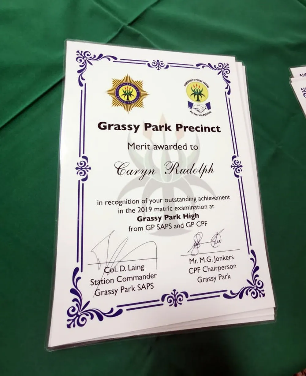 CPF chairperson Melvin Jonkers says the ceremony will become an annual event and the CPF will be awarding R1 000 to the top three matrics in the precinct, but are awaiting the official figures from the Western Cape Education Department.