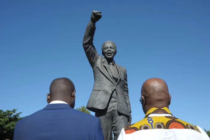 Minister of Justice and Correctional Services Ronald Lamola (left) and Nkosinathi "Nathi" Mthethwa during a wreath-laying ceremony at the Mandela statue outside Drakenstein Correctional services. Picture: Henk Kruger/African News Agency (ANA) Minister of Justice and Correctional Services Ronald Lamola (left) and Nkosinathi "Nathi" Mthethwa during a wreath-laying ceremony at the Mandela statue outside Drakenstein Correctional services. Picture: Henk Kruger/African News Agency (ANA)