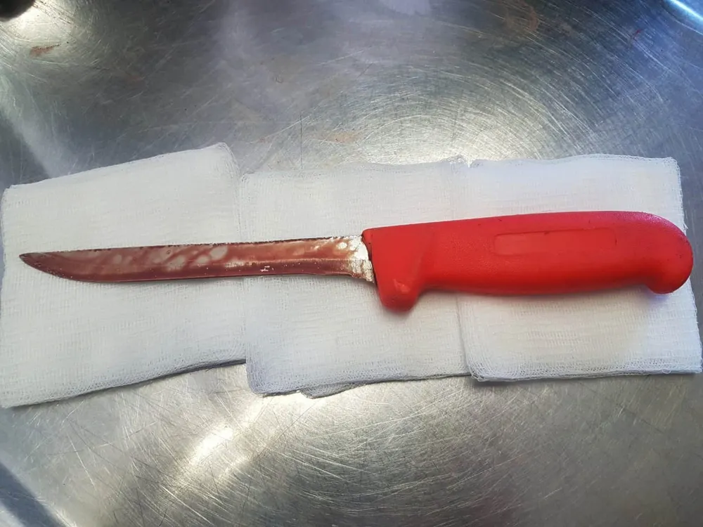 Perrins says the bloody knife used to stab the two was also retrieved and the wounded man was admitted to hospital.