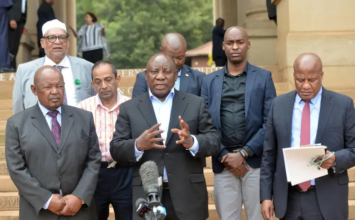 BRIEFING: President Cyril Ramaphosa and leaders at the Union Buildings yesterday BRIEFING: President Cyril Ramaphosa and leaders at the Union Buildings yesterday