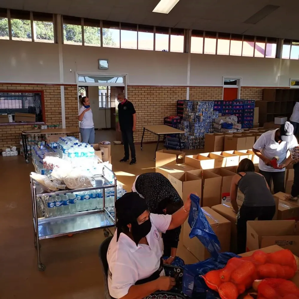 The hot food and parcels, provided by the Peninsula School Feeding Scheme, was distributed with the help of the C-Max security company.
