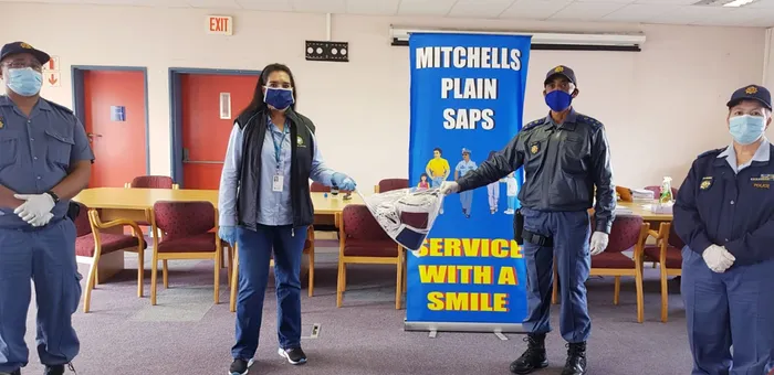 Councillor Sumaya Taliep handed out 200 masks at the Mitchells Plain Police Station yesterday, and a second batch of 170 masks were given to Woodstock Police Station.