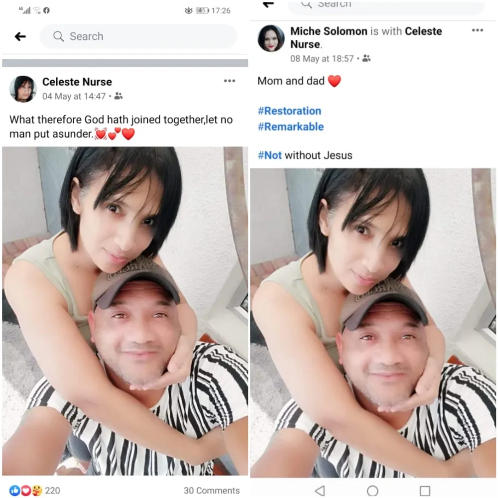 Miché shared the image on her own Facebook profile and captioned it: “Mom and dad. #Restoration #Remarkable #Not without Jesus”.