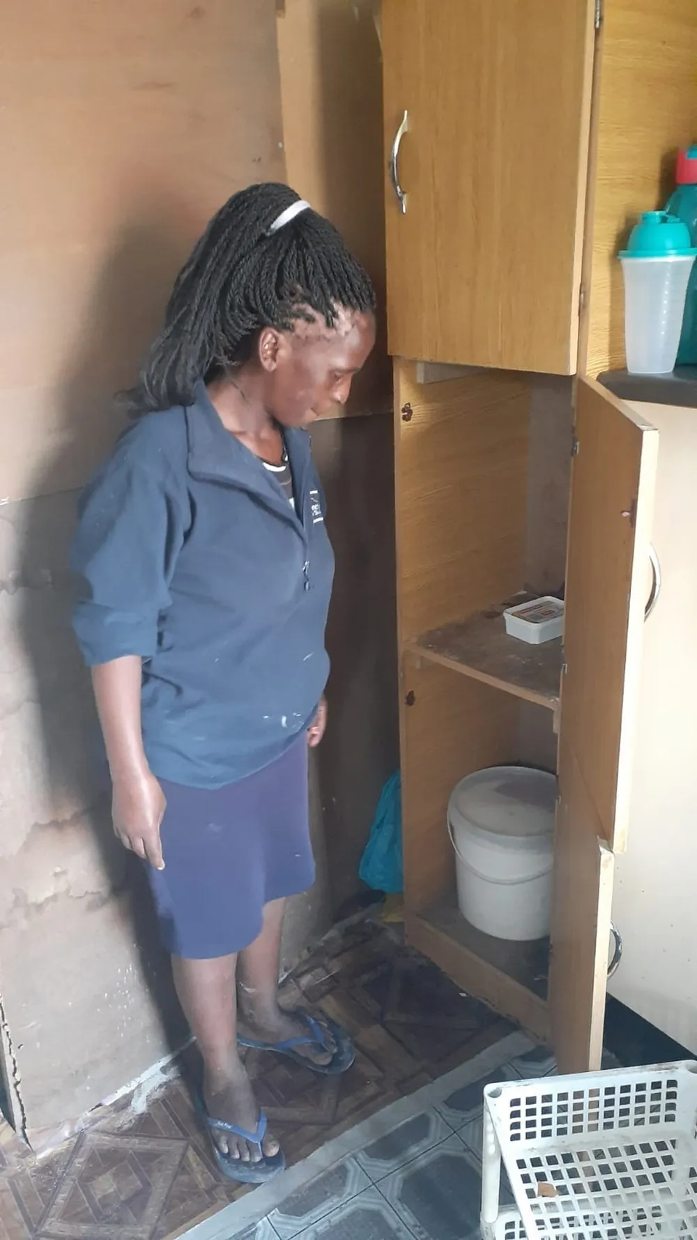 The mother of two relies on her children’s Sassa grants, which are R420 each, to survive but it’s not enough as she has to pay R400 for rent.