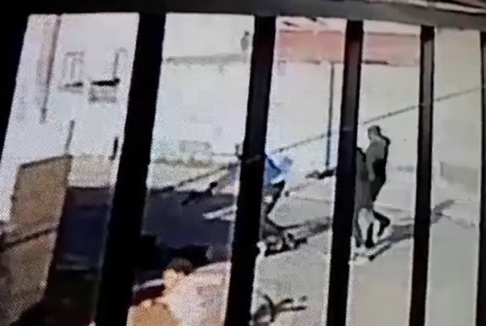 The clip, which appears to have been captured by a CCTV camera, shows three gunmen arriving in a silver car, getting out and firing a hail of bullets on a man identified as “Aggies”.