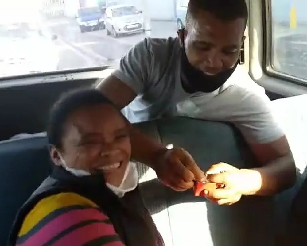 A Hanover Park couple’s surprise marriage proposal in a taxi has gone viral on social media.