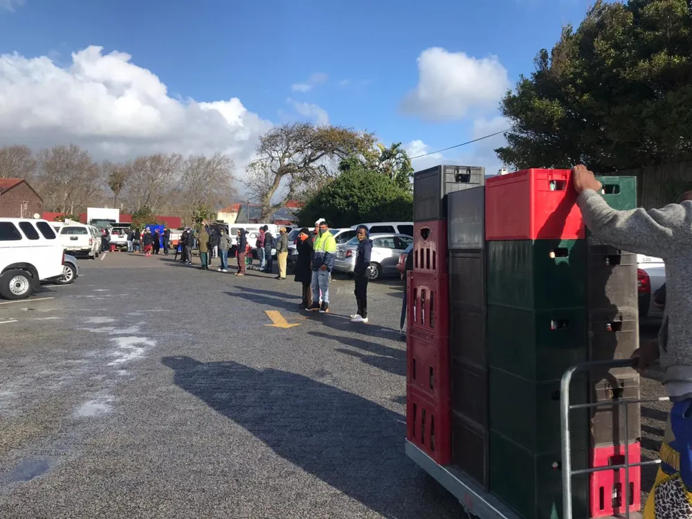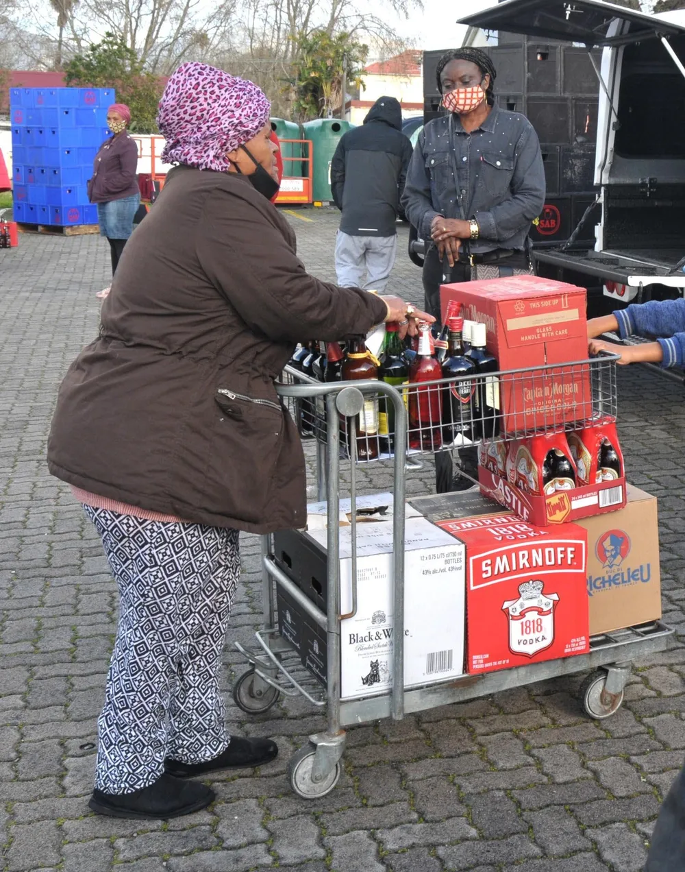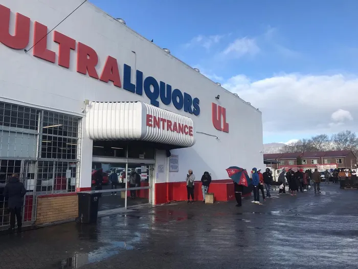 Yesterday, a long line snaked in the parking area of Ultra Liquors in Wynberg.