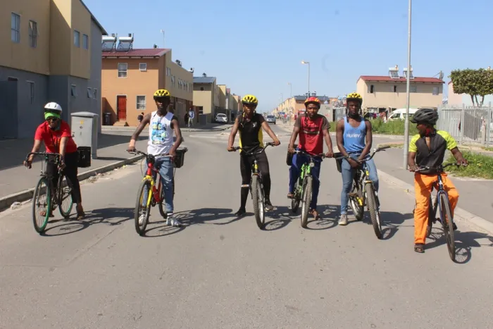 WHEELIE GREAT IDEA: The Bike2Work founders and fellow cyclists from Langa