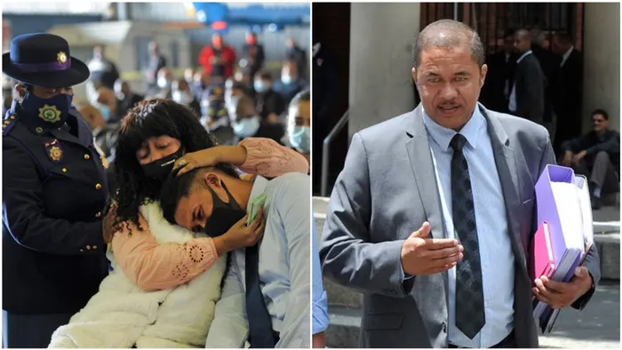 PAIN: Wife Nicolette comforting her son Carlisle at the Belhar memorial yesterday and HONOURED: Charl Kinnear