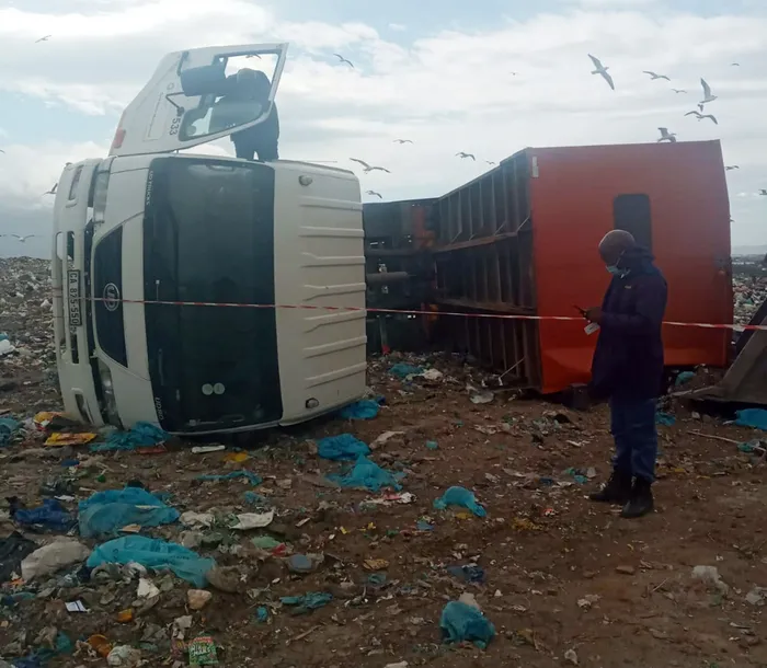FREAK ACCIDENT: The truck had toppled over at the Coastal Park Landfill due to strong winds