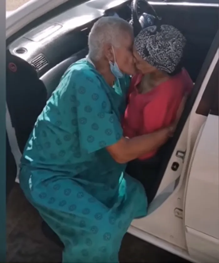 Cape Town-20-10-2020 An elderly Mitchells Plain couple is trending on social media after a video of their joyful reunion was posted on Facebook.By yesterday the video was viewed over 152 000 times with more than 3500 shares.Andrew Hoskins, 70, has been in hospital for two weeks, the longest time he’s been away from his family as visitors are not allowed.pic from video