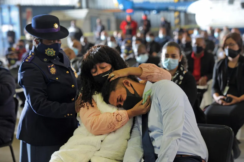 Nicolette Kinnear, widow of slain top cop Charl Kinnear, being comforted at his burial. Nicolette said she had not returned to work fully as yet but had been receiving ‘tons of support’. Picture: Ian Landsberg African News Agency (ANA)