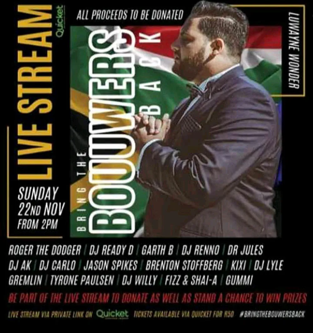 A campaign called Bring the Bouwers Home was launched on BackaBuddy, and a virtual concert hosted by fellow DJ Roger the Dodger at Studio 6 in Ottery is being held on 22 November at 2pm, featuring DJ Ready D, Garth B, Dr Jules and Jason Spikes.