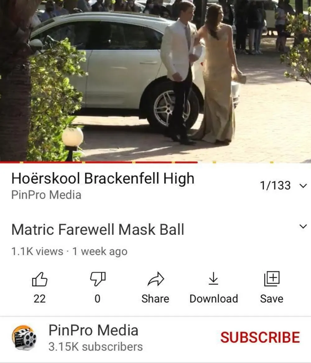 A company that does photography and videos of school events uploaded a video of guests arriving at the event on the “Hoerskool Brackenfell High” YouTube channel.
