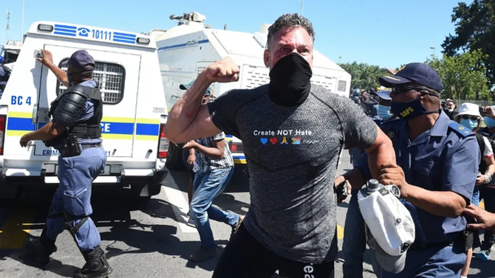 Police spokesperson FC van Wyk said: “One member of the public was injured after he attempted to disrupt the EFF protest. He was arrested on the scene on a charge of incitement and is also due in court in due course.
