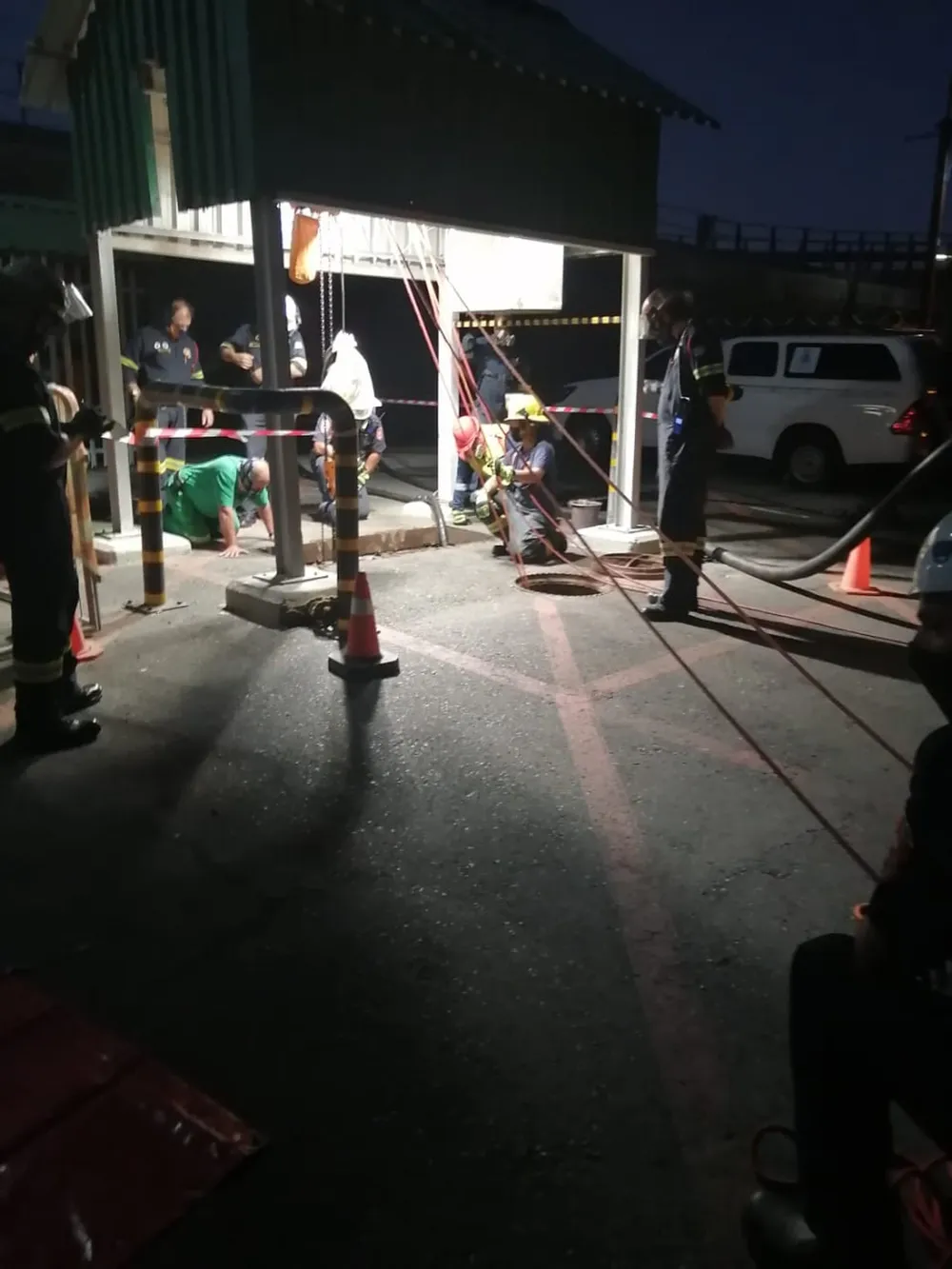 Due to the toxic gases where the bodies were situated, rescuers had to wear protective gear before being hooked onto an airline and lowered into the pit by a rope system.