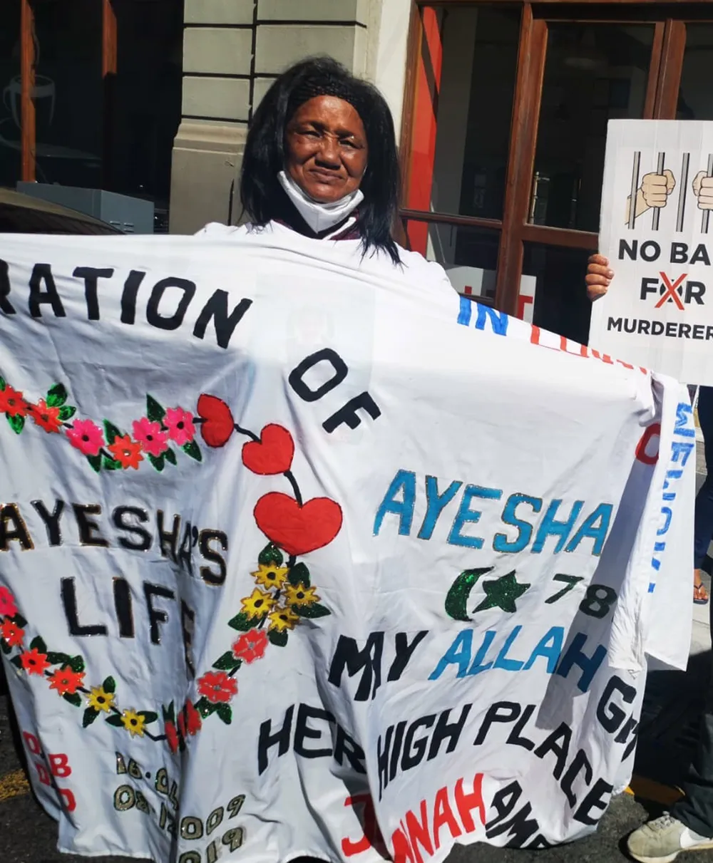 Outside court Ayesha’s ouma, Fayrouz, 59, told the Daily Voice that she is glad the matter is being heard at the High Court as they hope for harsh punishment: “We were hartseer coming here today, but it's nice to see the support from the community and that they didn’t just forget about Ayesha.