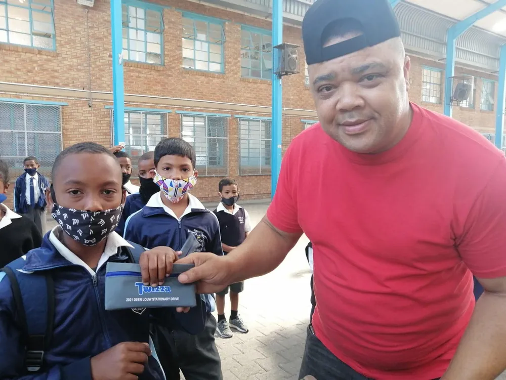 Deen visited Imperial Primary School in Mitchells Plain on Tuesday, where he gifted 50 grateful pupils with a pencil bag filled with a pen, pencil, sharpener, ruler and eraser.