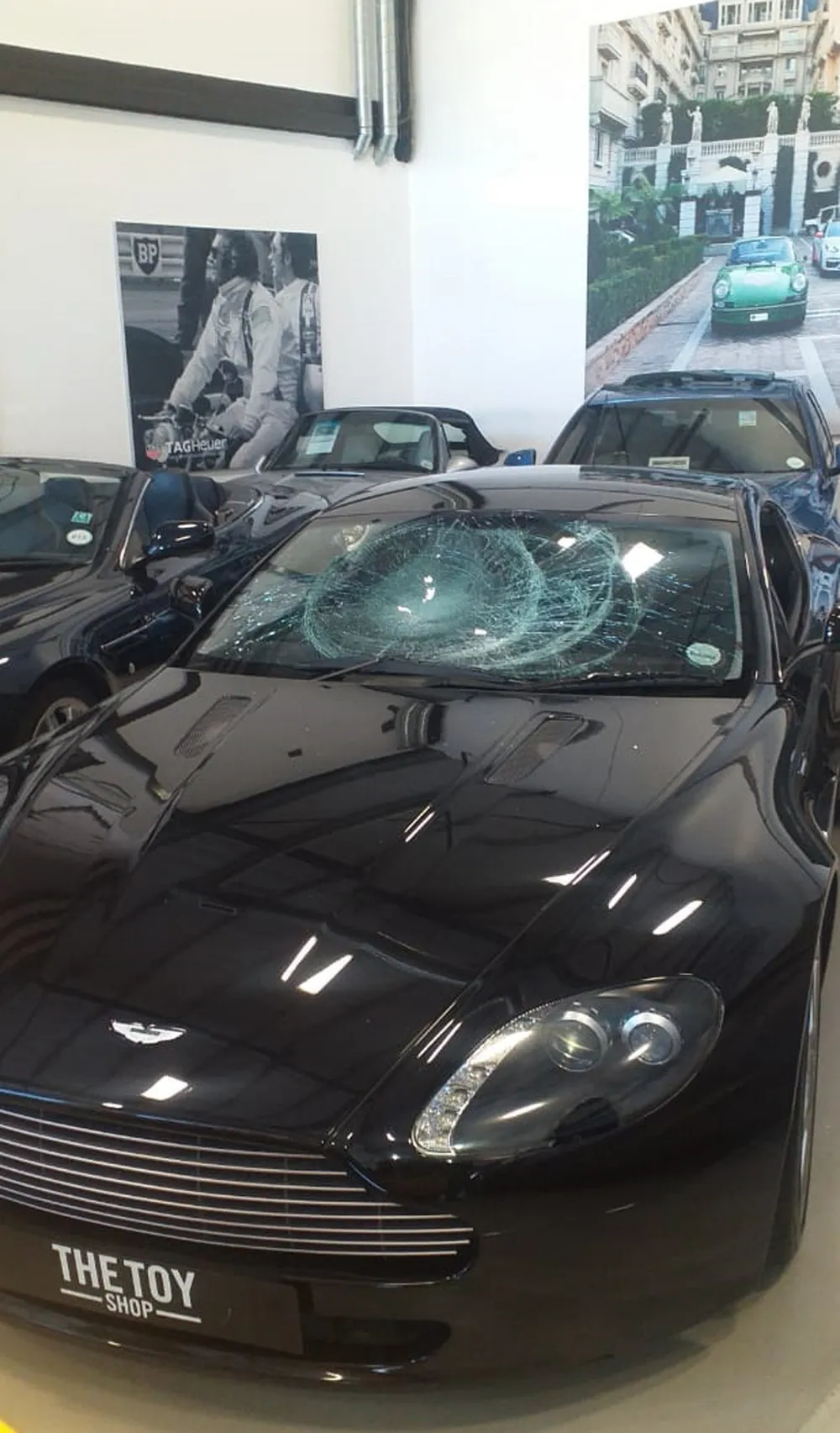 Pictures of the incident shared showed damages to showroom models including makes of Porsche, Aston Martin and Nissan GT-R.